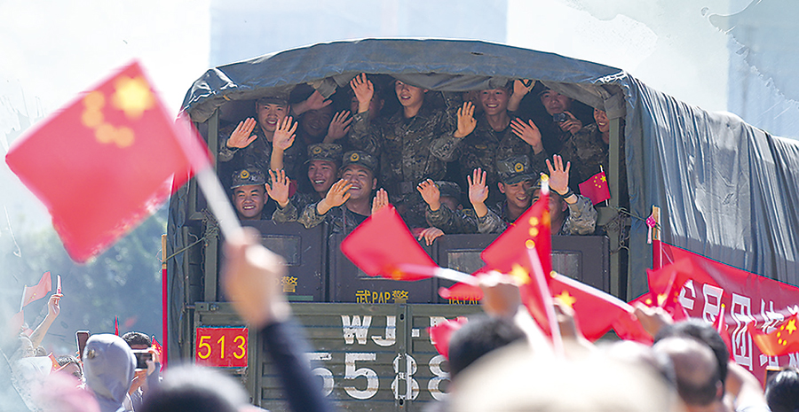 经过10余天连续奋战,武警官兵和其他救援力量筑起一道道护佑生命的钢铁防线,用行动深刻诠释了“人民军队为人民”的誓言。